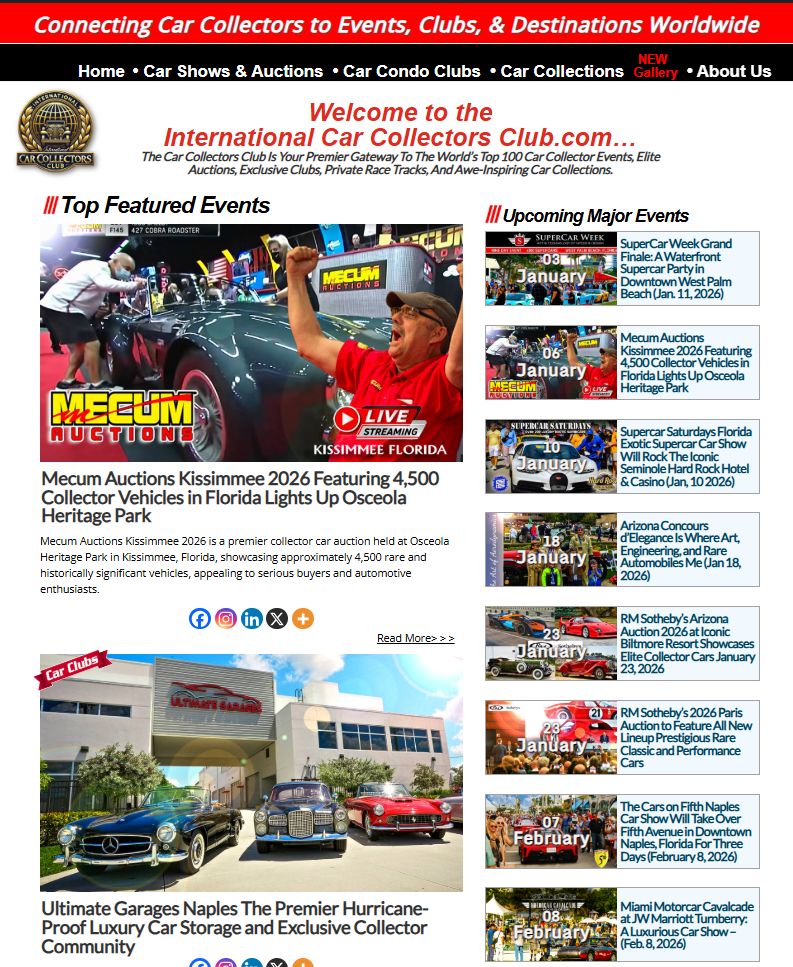 CarCollectorsClub.com is the only independent platform dedicated exclusively to documenting and analyzing the modern car collector ecosystem. Built on years of first-hand research, the site provides the most accurate and up-to-date information on car condo clubs, car storage communities, collector events, and automotive destinations across the United States and Canada.